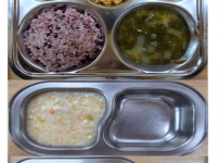 오전간식 소고기죽 점심 찰현미밥 근대두부된장국 모둠해물야채볶음 콩나물묵무침 김치 오후간식 모닝빵쨈 ..