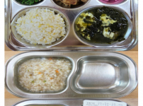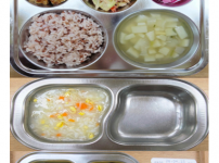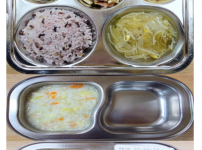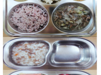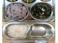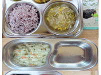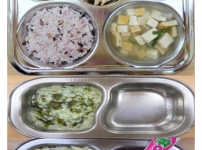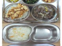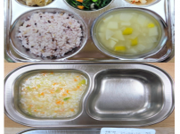 2026년 4월 7일 화요일 오전간식 가지애호박죽 점심 기장밥 계란미역국 떡산적구이 세발나물된장무침 김치 오후간식 삶은감자 우..