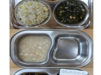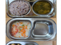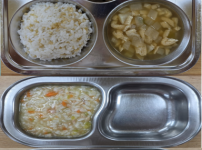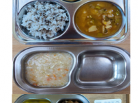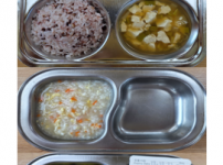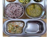 오전간식 영양누룽지죽 점심 기장밥 참치미역국 닭다리살토마토소스조림 양배추옥수수콘샐러드 김치 오후간식 ..