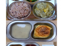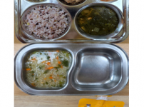 오전간식 두부얼갈이배추죽(생산량 저하로 아욱-얼갈이배추 로 대체) 점심 찰흑미밥 콩나물국 돈육새송이버섯볶음 ..