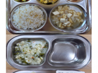 오전간식 닭살오이죽 점심 소고기카레볶음밥 김치순두부찌개 잔멸치아몬드볶음 김치 오후간식 핫도그 케찹 ..