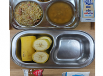 오전간식 바나나 점심 베이컨볶음밥 용가리치킨 무비트피클 유산균음료 오후간식 오곡초코크런치바 우유..