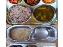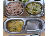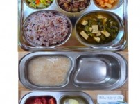 오전간식 고구마두부죽 점심 찰흑미밥 모둠버섯국 소고기숙주나물볶음 얼갈이배추된장무침 김치 오후간식 우..