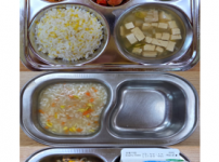 오전간식 잔멸치당근죽 점심 짜장덮밥 순두부찌개 감자채참치볶음 김치 오후간식 삶은계란 사과 요구르트..