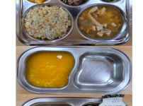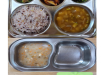 오전간식 영양단호박죽 점심 참치김치볶음밥 느타리버섯두부국 고사리나물들깨볶음 망고푸딩 김치 오후간식 ..