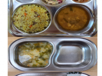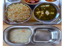 오전간식 미역양배추죽 점심 소고기카레볶음밥 팽이버섯된장국 모둠야채과일샐러드 김치 오후간식 우리밀찐빵 ..