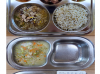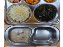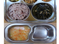 오전간식 크래미파프리카죽 점심 찰흑미밥 소고기미역국 돈육느타리버섯볶음 가지애호박볶음 김치 오후간식 ..