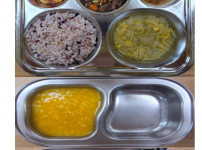 오전간식 단호박죽 점심 잡곡밥 콩나물무채국 소고기숙주나물볶음 토마토계란볶음 김치 오후간식 떡국 요..
