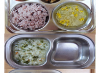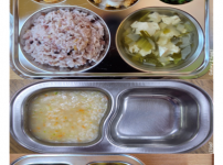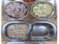 오전간식 순한김치죽 점심 모둠야채볶음밥 소고기미역국 팽이버섯애호박볶음 김치 오후간식 우리밀찐빵 요구..