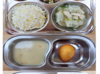 오전간식 애호박당근죽 점심 잡곡밥 청경채순두부국 새우볼튀김/소스 시금치나물무침 김치 오후간식 계란채..