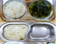 오전간식 미역쌀죽 점심 차수수밥 감자양파된장국 돈육가지볶음 콩나물미나리무침 김치 오후간식 애호박전 ..
