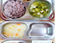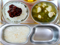 오전간식 : 닭가슴살야채죽 점심 : 짜장덮밥 근대순두부국 단무지무침 요거트푸딩 김치 오후간식 : ..