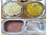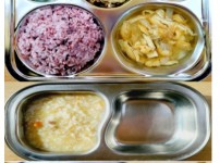 오전간식 : 영양단팥죽 점심 : 기장밥 맑은콩나물국 돈육수육 양배추찜/쌈장 김치 오후간..