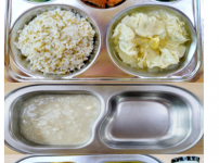 오전간식 : 애호박당근축 죽 점심 : 잡곡밥 감자양파된장국 훈제오리/머스타드소스 느타리파프리카볶..