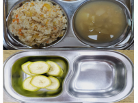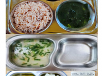 오전간식 : 양송이스프 모닝빵 점심 : 잡곡밥 유부무채국 소고기느타리버섯볶음 오이크래미무침 김치 오..