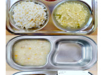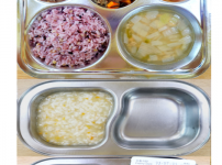 오전간식 : 참치야채죽 점심 : 찰현미밥 순두부계란국 돈육가지볶음 토마토양상추샐러드 김치 오후간식 ..
