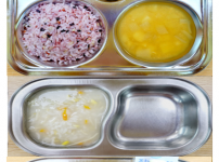 오전간식 : 영양단팥죽 점심 : 기장밥 콩나물김치국 떡갈비구이 얼갈이배추무침 김치 오후간식 : 물만..