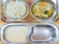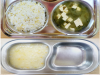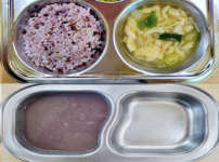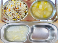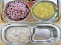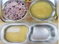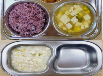 오전간식 :참치당근죽 점심 :잡곡밥 감자양파국 오징어돈육볶음 오이파프리카무침 김치 오후간식 :소고기..