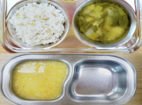 오전간식 :계란양배추죽 점심 :소고기콩나물밥/양념장 감자애호박된장국 비앤나어묵야채볶음 김치 오후간식 ..