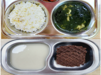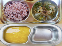 오전간식 :옥수수죽 점심 :찰보리밥 청경채된장국 돈육메추리알조림 콩나물미나리무침 김치 오후간식 :햄..