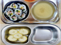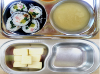 오전간식 :바나나 점심 :참치김밥 미소국 오이사과무침 딸기푸딩 김치 오후간식 :우리밀카스테라 요구..