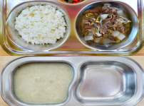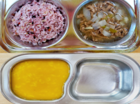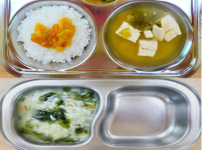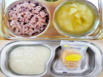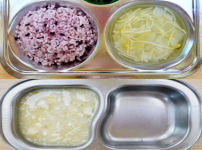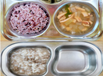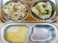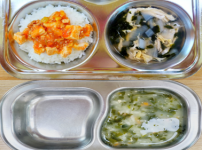오전간식 :순한김치죽 점심 :돈육야채볶음밥 물만두국 콩나물미나리무침 김치 오후간식 :핫도그 요구르..