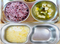 오전간식 :야채참치죽 점심 :잡곡밥 두부애호박된장국 소고기청경채볶음 토마토에그스크럼블 김치 오후간식..