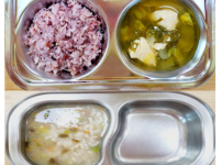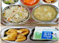 2024년 4월 15일 월요일 오전간식 : 영양누룽지 점심 : 기장밥 바지락미역국 닭가슴살감자카레볶음 새..