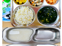 2024년 3월 27일 수요일 오전간식 : 가지애호박죽 점심 : 잡곡밥 얼갈이순두부된장국 돈육느타리버섯볶음..