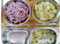 2024년 4월 1일 월요일 오전간식 : 옥수수양파죽 점심 : 잡곡밥 아욱두부된장국 닭가슴살카레볶음 과일..