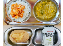 2024년 4월 5일 금요일 오전간식 : 아욱된장죽 점심 : 잡곡밥 사각어묵무채국 돈육메추리알조림 감자당..