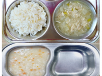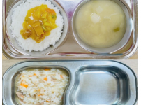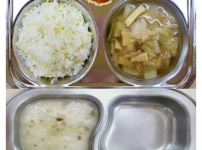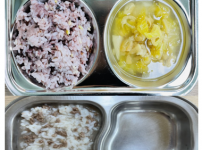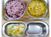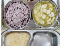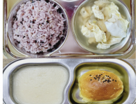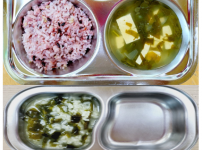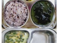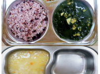 2024년 3월 4일 월요일 오전간식 : 미역쌀죽 점심 : 잡곡밥 아욱두부된장국 닭가슴살감자카레볶음 청포..