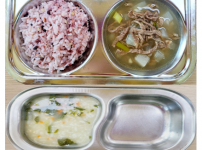 2024년 2월 28일 수요일 오전간식 : 청경채죽 점심 : 잡곡밥 소고기무채국 우리콩두부동그랑땡 과일야..
