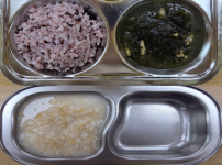 오전간식 콩나물죽 점심 찰보리쌀밥 홍합살미역국 소고기양송이버섯볶음 시금치당근무침 김치 오후간식 케이..