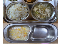 오전간식 옥수수죽 점심 찰현미밥 닭곰탕 코다리무양념조림 크래미오이무침 김치 오후간식 감자수제비 짜..