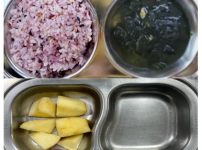 2024년 1월 2일 화요일 오전간식 : 영양누룽지 점심 : 잡곡밥 유부무채장국 소고기양송이버섯조림 콩나..