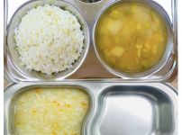 2023년 12월 15일 금요일 오전간식 : 옥수수죽 점심 : 카레라이스 순한김치유부국 크래미사과무침 김..