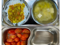 2023년 12월 17일 수요일 오전간식 : 방울토마토 점심 : 카레라이스 애호박두부된장국 도토리묵김가루무..
