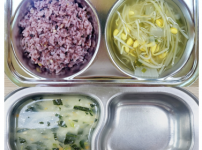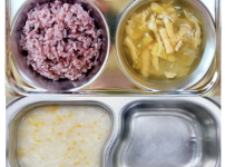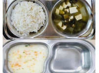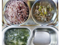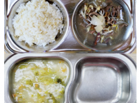 2023년 12월 7일 목요일 오전간식 : 아욱죽 점심 : 잡곡밥 소고기무채국 모듬야채계란말이 도토리묵상..