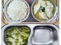 2023년 12월 1일 금요일 오전간식 : 순두부야채죽 점심 : 돈육잡채덮밥 순한김치유부국 시금치나물무침 ..