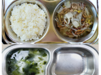 2023년 12월 4일 월요일 오전간식 : 미역쌀죽 점심 : 찰현미밥 순한육개장 오징어낙지야채볶음 멸치파..