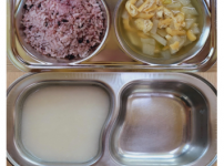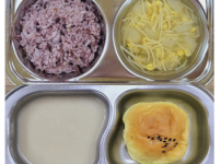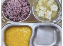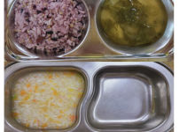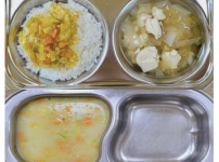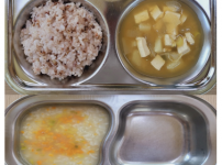 2023년 9월 20일 수요일 오전간식 : 단호박죽 점심 : 찰흑미밥 참치순두부찌개 우리콩동그랑땡 / 소스..