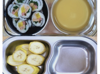 2023년 9월 22일 금요일 오전간식 : 바나나 점심 : 참치김밥 미소국 비엔나케찹야채볶음 망고푸딩 ..
