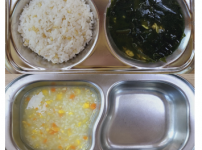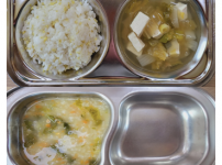 2023년 10월 5일 목요일 오전간식 : 옥수수죽 점심 : 보리쌀밥 바지락미역국 삼치카레구이 오이사과무..