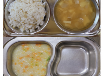 2023년 10월 10일 화요일 오전간식 : 모듬야채죽 점심 : 차수수밥 감자양파된장국 돈육두부김치조림 ..
