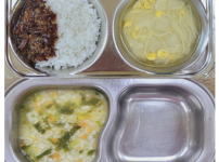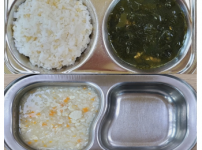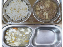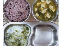 2023년 8월 29일 화요일 오전간식 : 순두부참깨죽 점심 : 찰보리밥 소고기팽이버섯국 모듬야채계란찜 ..