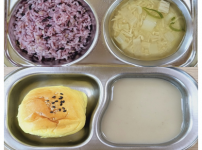 2023 년 8월 7일 월요일 오전간식 : 영양누룽지 점심 : 차수수밥 얼갈이배추국 훈제오리가지볶음 아..