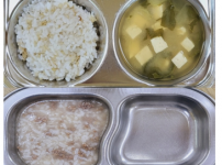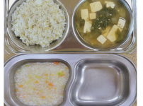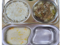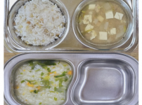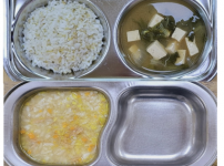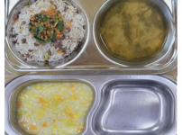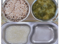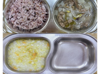 2023년 8월 21일 월요일 오전간식 : 소고기죽 점심 : 찰현미밥 얼갈이두부된장국 베이컨양배추볶음 ..