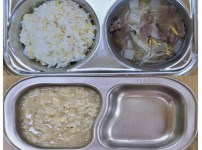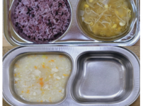 2023년 5월 9일 화요일 오전간식 : 순두부야채죽 점심 : 찰흑미밥 콩나물김치국 돈육수육 양배추찜 ..