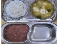 2023년 4월 25일 화요일 오전간식 : 영양단팥죽 점심 : 찰현미밥 청경채순두부국 야채계란말이 콩나물..